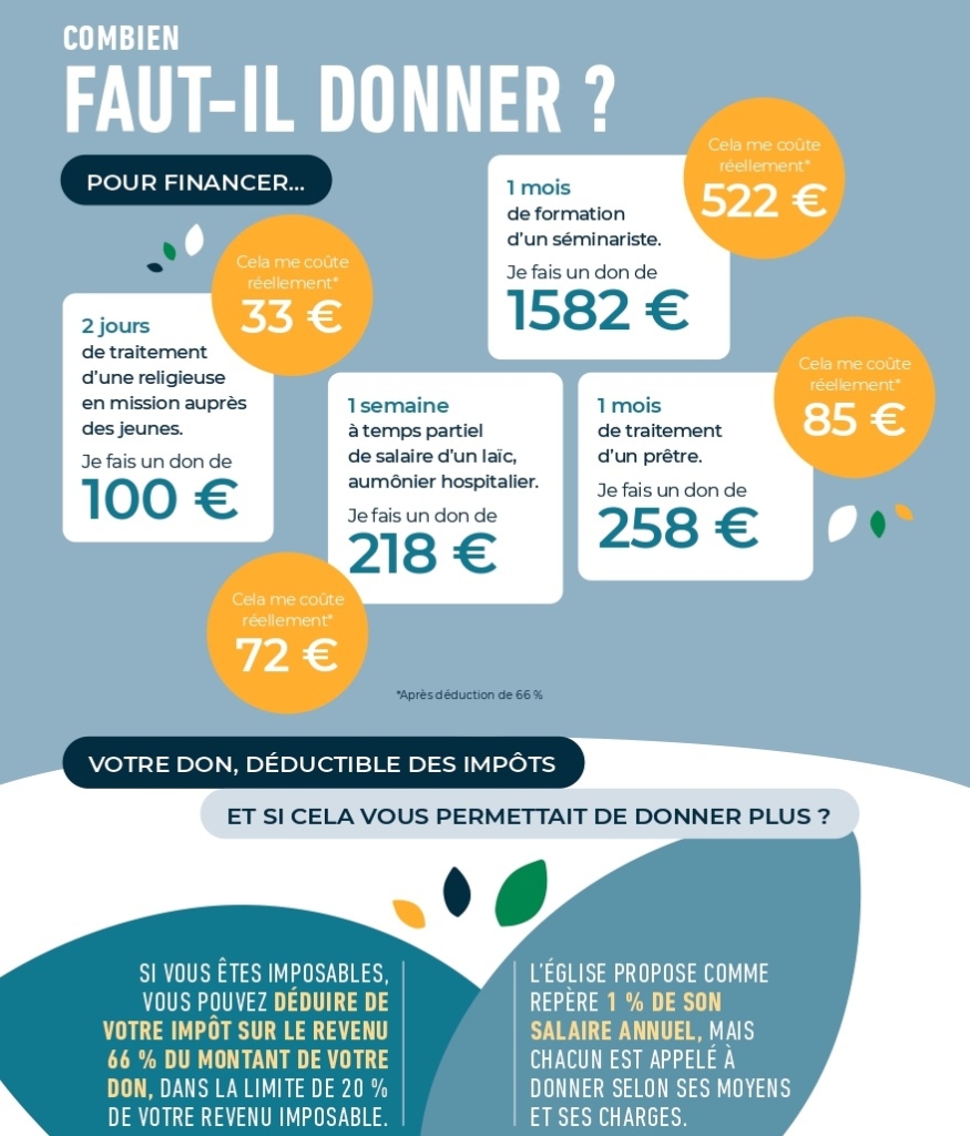 Si vous êtes assujettis à l’impôt, votre don au denier donne droit à une déduction fiscale.