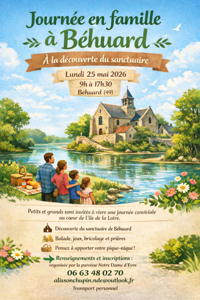 A la découverte du sanctuaire le lundi 25 mai de 9h à 17h30 avec balade, jeux, bricolage et prières ! Petits et grands sont invités à vivre une journée conviviale au cœur de l’ile de la Loire.